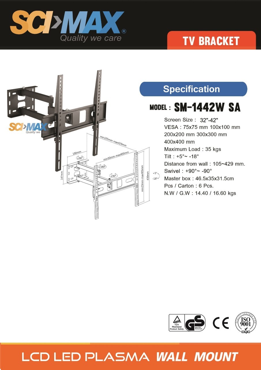 ขาแขวนทีวีแบบติดผนังปรับ ซ้าย-ขวา รองรับทีวีขนาด 32″-42″ นิ้ว